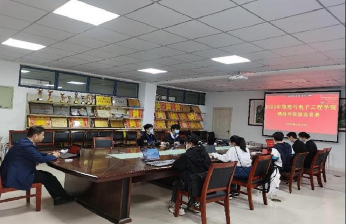 为深化大学生创业实践,提升青年学生创新创业能力,4月13日下午,物理与电子工程学院在线上举行2022年“挑战杯”院级选拔赛。阜阳市科技情报所长李克、市委党校童云教授以及物理与电子工程学院院长朱勇教授、高级工程师陈韬老师、ICT负责人秦刚老师应邀担任此次比赛评委。
