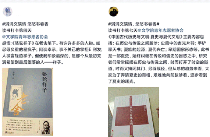 学问勤中得,萤窗万卷书。此次线上读书打卡活动进一步提高了文学院学生的文化素养,丰富了疫情防控期间学生的精神生活,开拓了学生的知识视野。
