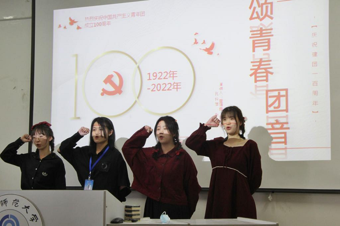 本次比赛共两轮,2021级和2022级各团支部均以视频形式参赛,经过选拔共12组团队进入现场演讲环节,参赛选手根据抽签顺序依次登台展示,配合着气势磅礴的伴奏,将他们的风格发挥的淋漓尽致。演讲过程中,每位参赛选手都精神饱满、感情充沛、表达流畅,演讲内容紧扣“庆祝建团百年”的主题,带领大家共同追忆中国共青团百年来不断发展壮大的光辉岁月,展示出青年团员对共青团的热爱。台下的观众全神贯注地倾听,现场氛围热烈,掌声此起彼伏。吴慧梓在点评时肯定了选手们在情感和表现力上的出色,她同时指出选手们的不足之处,从着装、面部表情及肢体动作等方面提出了几条针对性建议。