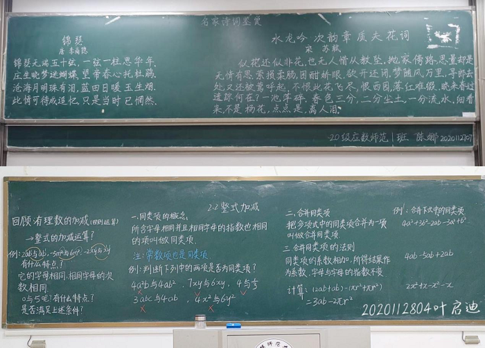 为强化师范生教学基本技能,提高师范生的粉笔字书写能力,达到以赛促练的目的,数学与统计学院于5月下旬开展“粉墨师大 笔抒中华”粉笔字大赛,2019级、2020级的百余名师范生参加活动。