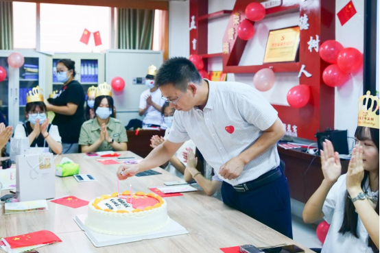 迎盛世华诞,与祖国同庆。10月1日,外国语学院举办“喜迎党的二十大,我与祖国共庆生”集体生日会,学院党委书记刘张飞、副书记戴亮、全体辅导员参加活动。刘张飞代表学院向国庆期间过生日的37名同学送上生日祝福,并为“小寿星”们点上蜡烛。同学们在烛光中默默许下心愿,祝福祖国、祝福学校、祝福自己。辅导员们为过生日的同学送上亲手制作的生日贺卡和小礼物,合唱生日快乐歌。生日会在齐唱《我和我的祖国》中达到高潮。
