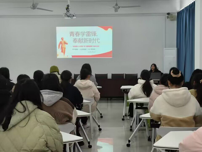 今年是毛泽东等老一辈革命家为雷锋同志题词60周年。60年来,学雷锋活动在全国持续深入开展,雷锋的事迹深入人心,雷锋精神滋养着一代代中华儿女的心灵。实践证明,无论时代如何变迁,雷锋精神永不过时。为引导马克思主义学院学子在新时代大力弘扬雷锋精神,深刻把握坚守崇高理想、秉持人民情怀、践行奉献精神、投身民族复兴的思想内涵,学院于2月25日上午在三里桥校区召开“学习雷锋精神”专题宣讲活动。学生会综合事务中心部长王俊婧紧紧围绕习近平总书记关于学习雷锋精神的重要指示展开宣讲,分别从什么是雷锋精神、新时代雷锋精神的内涵、如何践行新时代雷锋精神、弘扬和传承雷锋精神进行深刻讲解。主题宣讲活动进一步激发了青年学生全心全意为人民服务的热情,以对党对祖国的无限热爱厚植爱国情怀,锤炼“忠诚”的精神品质。