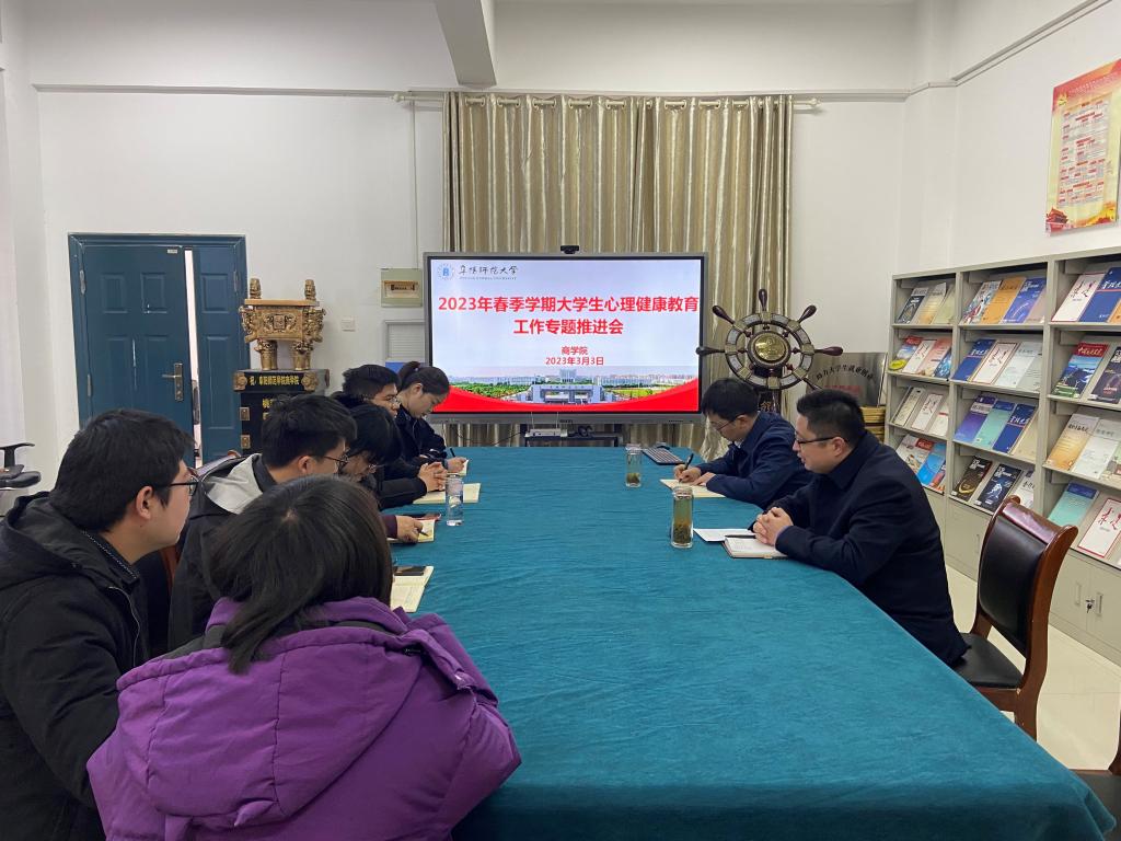为进一步推进大学生心理健康教育工作,提升心理育人工作的针对性和实效性,3月3日上午,商学院召开2023年春季学期大学生心理健康教育工作专题会议。院党委书记宋东锋主持会议,院党委副书记王永刚、全体辅导员参加会议。