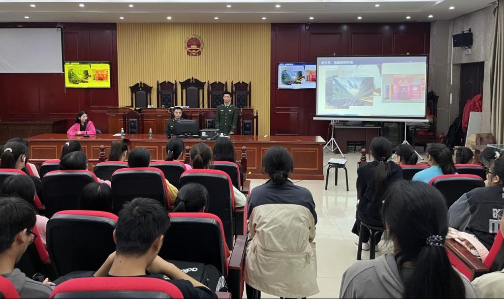 为加强大一新生国防教育,强化爱国之心,树立崇高理想,近日,法学院在西湖校区景行楼模拟法庭举办了退伍军人分享会。会议邀请了法学院2023年两位退伍军人况子阳、李征东主讲,法学院党委书记马健、辅导员老师、2023级全体新生参加分享会。