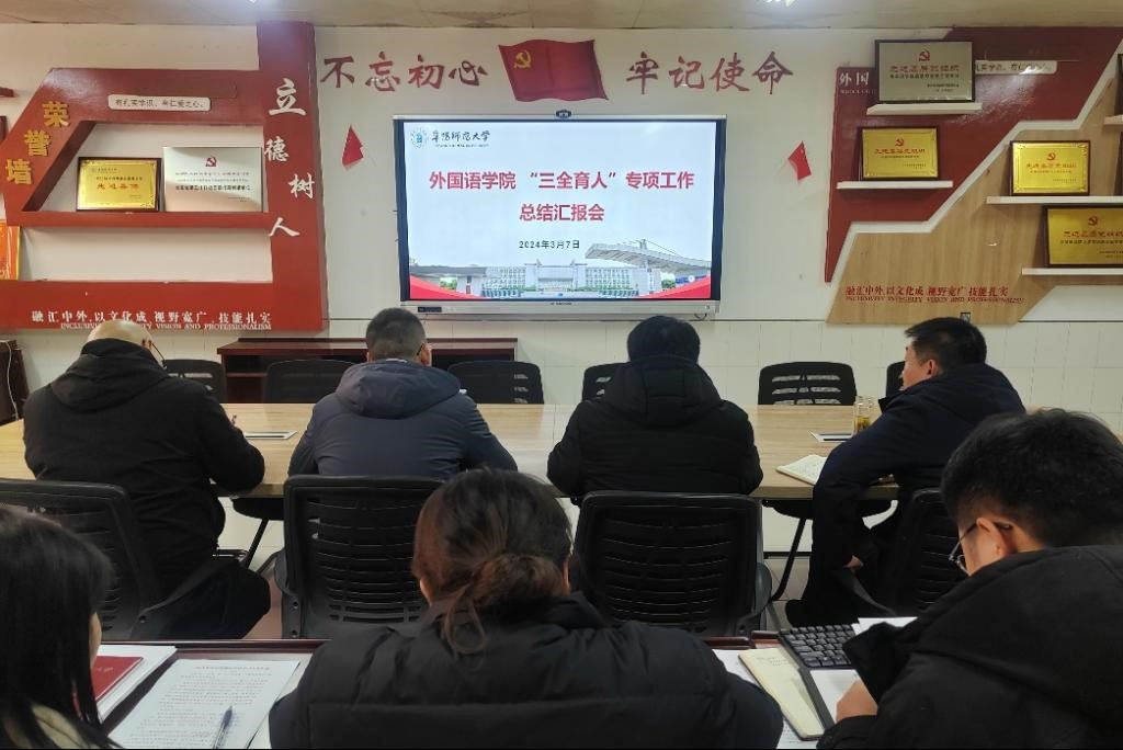 为全面落实立德树人根本任务,不断推动“三全育人”综合改革工作走深走实,3月7日,外国语学院在景行楼816会议室召开2023年度“三全育人”专项工作总结汇报会。学院党政领导及全体辅导员参会,会议由党委副书记、纪委书记戴亮主持。