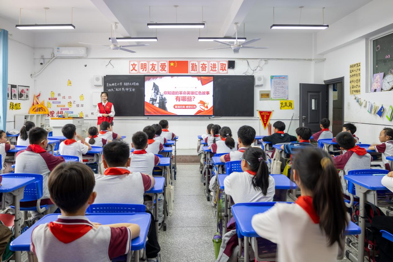 为缅怀革命先烈,传承红色基因,激发小学生爱国热情和民族自豪感,增强志愿者历史使命感与社会责任感,马克思主义学院于4月9日前往阜阳师范大学附属小学,开展“铭记四九,薪火相传”志愿宣讲活动。