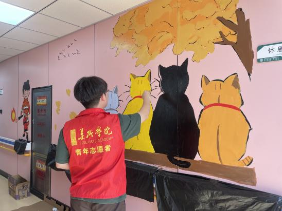 为了更好地给医院患者营造出一个温馨舒适的环境,进行康复训练,美术学院青年志愿者协会于近日联合阜阳市第五人民医院康复院区开展“心绘彩虹路,爱暖星之光”爱心墙绘志愿服务活动。