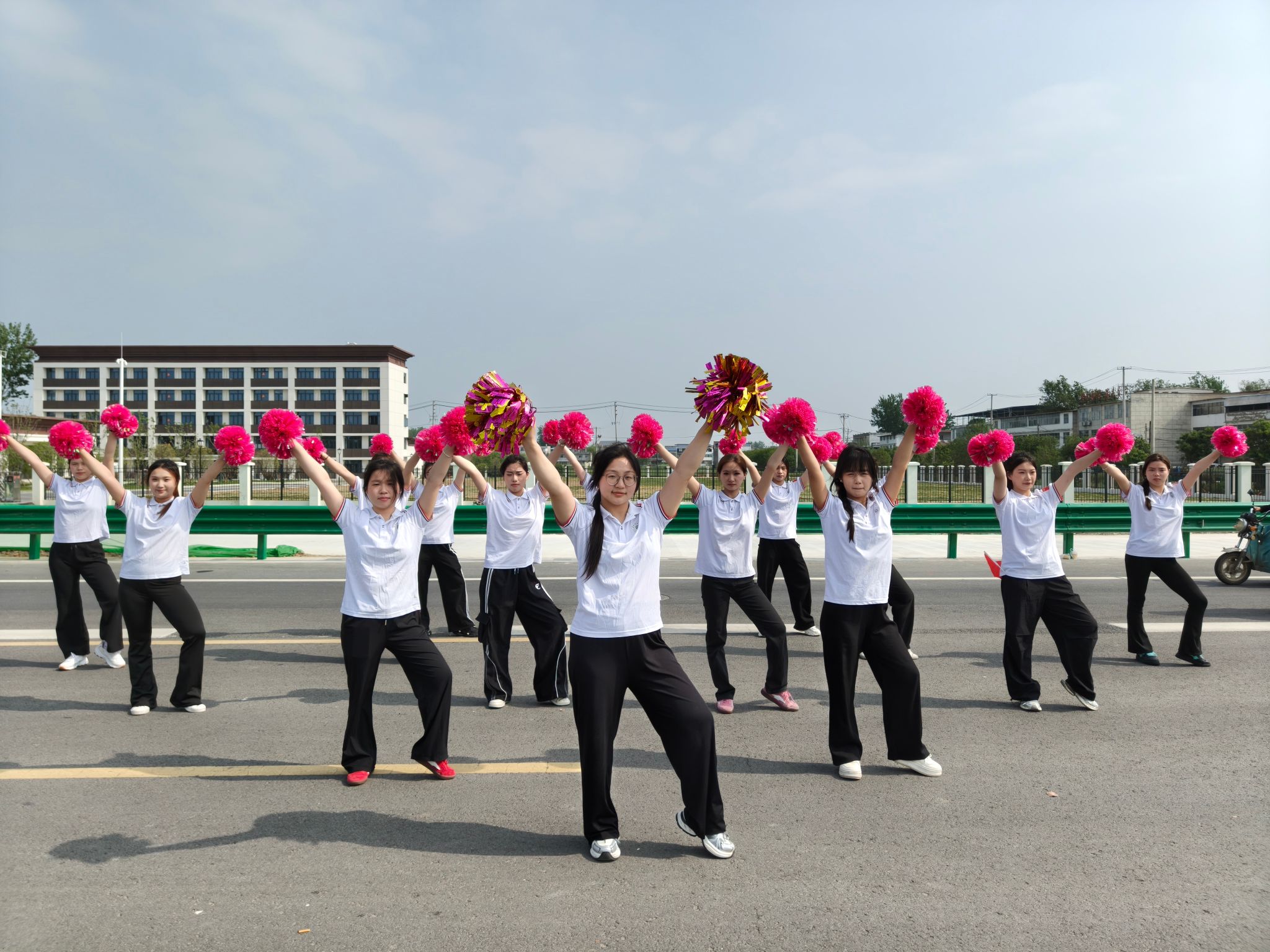 在赛事现场的文化加油站,我校体育学院的学子们带来了精彩的体育文化节目表演。同学们身着统一服装,手持彩球,用动感舞蹈为选手们加油助威,为比赛注入了一抹不一样的活力色彩。同学们活力四射、动作整齐有力,充分展现了我校学子昂扬向上、朝气蓬勃的良好风貌。
