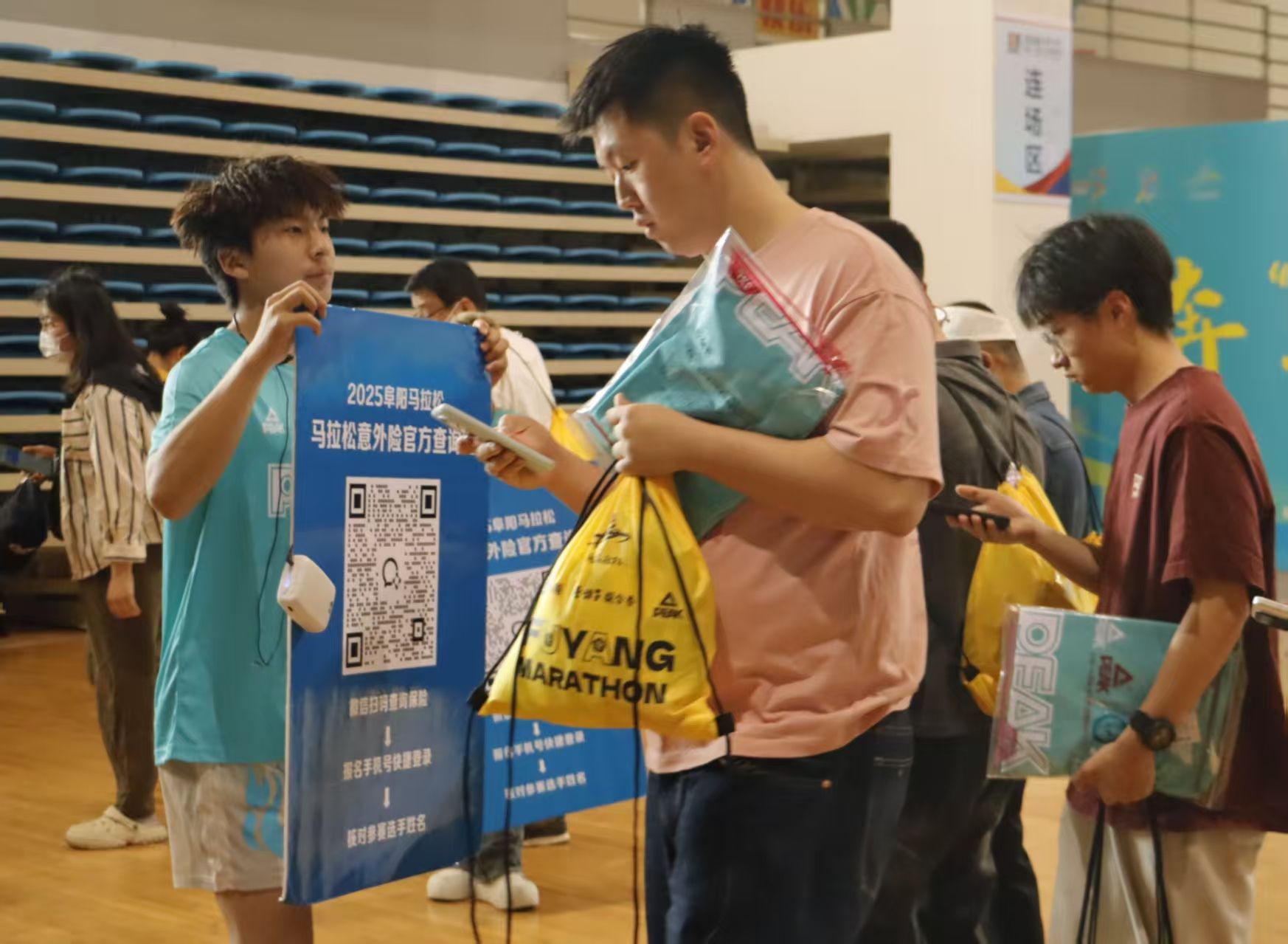 大学生志愿者们承担了赛前选手物资装包及物资发放工作。为了确保每一位参赛者都能顺利领取到参赛包,志愿者们分工有序地按照比赛物资、特色产品等进行装包,经过3天的紧张工作,将赛事包全部装配完毕。赛事包发放涉及外场指引、参赛身份验证、芯片检测等多项任务,志愿者们坚持以“零差错”标准确保每位选手顺利领取物资,以饱满的热情为“阜马”跑友们提供 “一站式”领取服务,耐心解答选手疑问,获得参赛者一致好评,用实际行动诠释了当代大学生的社会责任感。