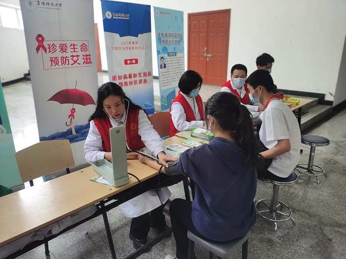 阜阳市第二人民医院还在活动现场为我校师生提供了血压测量、健康咨询等服务,发放了中国公民健康素养、控烟禁烟、流感防治、高血压防治、大学生艾滋病预防、布鲁氏菌防治等各类宣传资料。