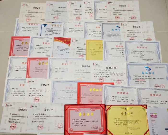 千里之行,始于足下,成功往往是经验积累的结果。“通过在大学参加的各项专业性比赛,我学到了很多在课堂上可能无法学到的知识。”程昕冉在大二参加了全国大学生广告设计大赛,这次比赛让她取得了一定成绩,也让她学到了很多知识,提高了自己的专业素养,也为她在大三继续获得该赛事的各项荣誉打下了坚实的基础。程昕冉在专注提高自身能力的同时,也积极发挥自己作为团支书的带动作用,和其他同学们一起,在班级中营造了一个良好的学习氛围。