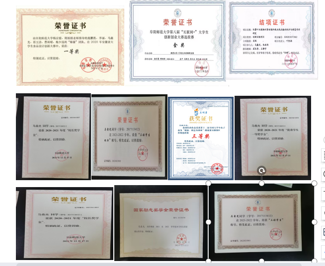 1.2020年:荣获第2020年安徽省大学生食品设计创新大赛一等奖;