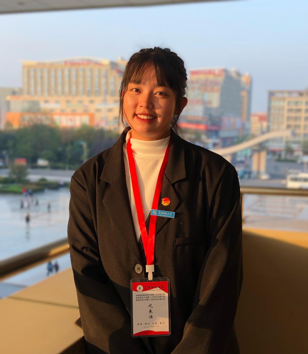 张莹,女,汉族,2001年2月出生,中共党员,安徽广德人,阜阳师范大学外国语学院2019级翻译专业4班学生,先后担任外国语学院团委兼职副书记、外国语学院青年志愿者协会主席,2021级新生辅导员助理,获得荣誉如下: