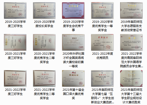 4.2021年6月:荣获阜阳师范大学第十三届大学生职业规划设计大赛优胜奖;