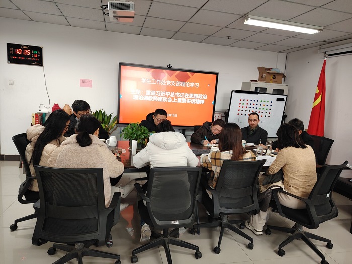 3月18日上午,学生工作处党支部召开专题理论学习会,重温习近平总书记在全国思想政治理论课教师座谈会上重要讲话精神。支部全体党员参加,会议由支部书记黄正杰主持。