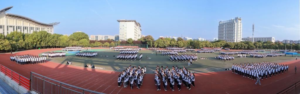 站定如松,目光坚毅,身姿挺拔,面庞严肃。飒飒军姿彰显青春力量,骄阳不减青年韧劲。阳光在枝桠间割裂,光影在叶隙间斑驳,每片纹路都写着成长的脉络。红色跑道无限延长,绿茵操场永远热烈,汗水勾勒面庞,微风牵起发梢,新生们用实际行动证明:今日多少凌云志,化作豪情意飞扬。