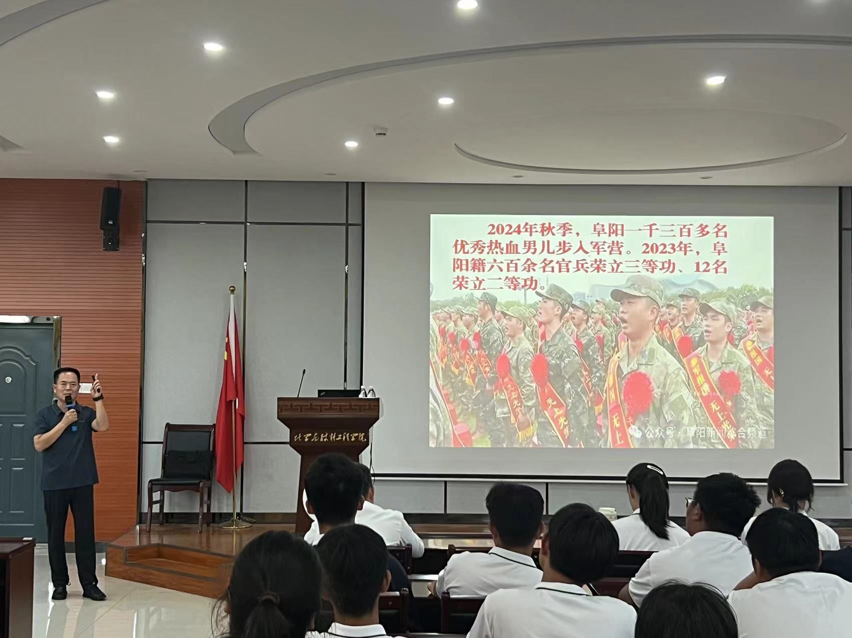 9月23日下午,我校特邀越战退伍老兵代建礼同志,阜阳市退役军人事务局副局长程龙同志来校为2024级新生作国防教育专题讲座。二级学院师生代表近200人现场聆听了讲座,活动由学校武装部部长黄正杰主持。