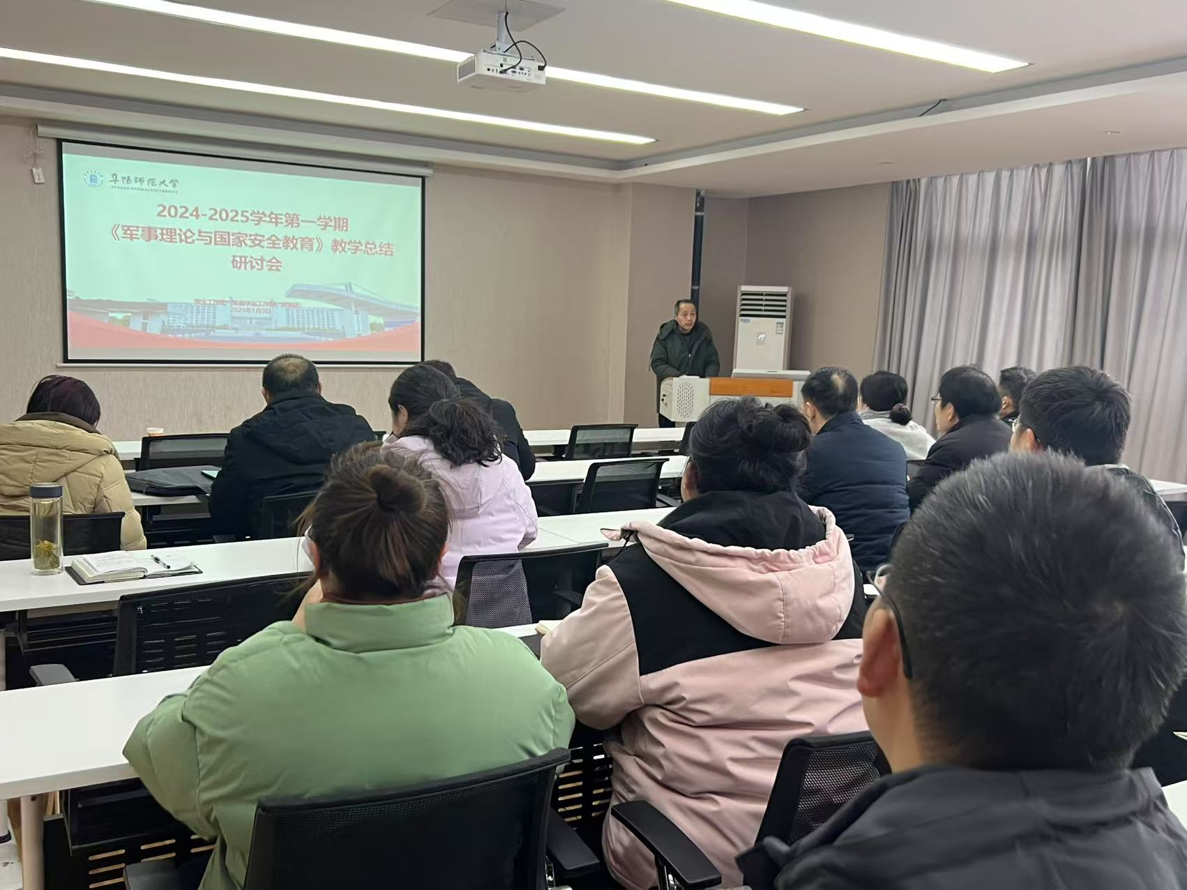钱守云代表教研室对2024年秋季学期《军事理论与国家安全教育》课程教学工作进行了全面回顾与总结。与会同志围绕更新教学资源、创新教学方法、规范教学管理、强化教学评价等内容,分享教学中的经验与心得,并就教学工作中遇到的问题与挑战,进行了交流和研讨。