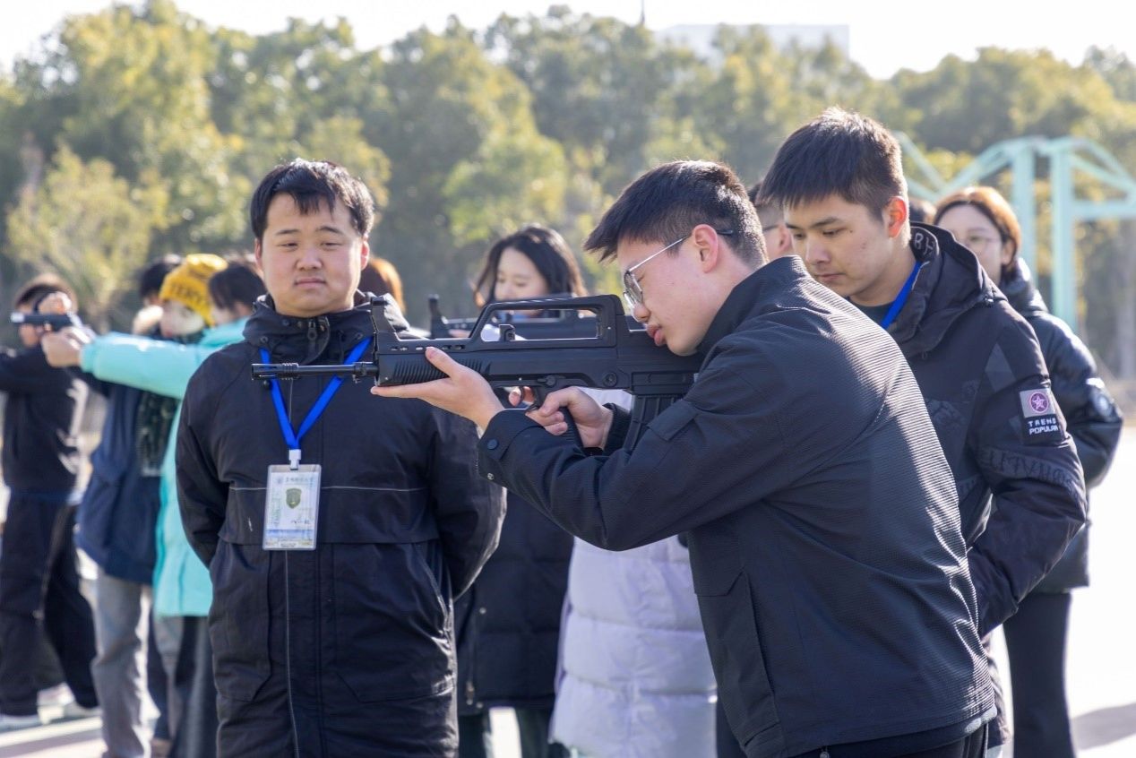 座谈会后,学校还安排社团中退役大学生成员现场演示95式自动步枪模型拆装,阜阳理工学院师生亲身体验了轻武器拆装实操。随后,两校师生在西湖校区南操场进行了轻武器模拟打靶体验活动。