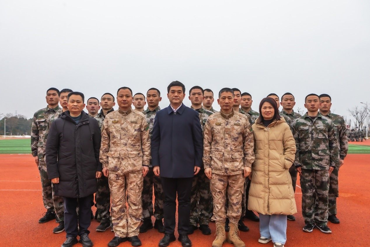 窦贤琨副校长在训练场上与参训学生一一握手致意,并与学生进行了深入交流,详细询问了他们的训练和生活情况。他对同学们积极响应国家号召、投身军旅的热情和决心给予了高度赞扬,并鼓励大家在训练中要严格要求自己,刻苦训练,争取以优异成绩完成训练考核。他要求同学们要坚定理想信念,强化使命担当,在训练中充分汲取营养,为即将开始的军旅生活做好充分准备;要牢记“听党指挥、能打胜仗、作风优良”的训令,争做“有灵魂、有本事、有血性、有品德”的新时代革命军人!