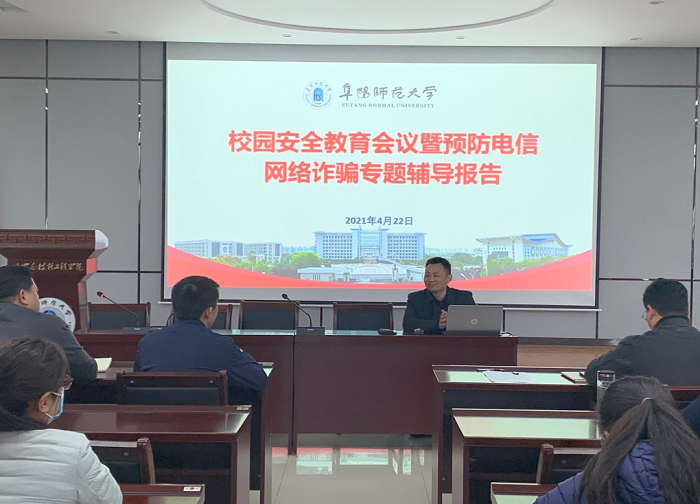 会议还邀请阜阳市公安局国保支队二大队教导员孙武军、颍州区公安分局刑警大队副大队长李娟娟分别就“校园反邪教”和“校园反电信网络诈骗”作专题辅导报告,颍州区公安局颍西派出所副所长王枫就近年来辖区高校涉案警情做了通报。刘克思在讲话中强调了当前校园安全的重要性和复杂性,要求广大学工人员要提高认识,积极配合学校和属地公安部门做好大学生安全和教育工作。