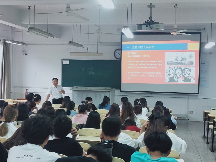 支部书记黄正杰以“中国共产党的民本思想”为题,通过“党史中关于人民表述”“党的领导人的人民情怀”、“党和国家的人本国策”等三个方面具体故事和实例,向学生阐释了中国共产党以人民为中心的发展思想,促进学生对中国共产党的初心和使命的理解和认识,进而引导学生坚定爱党爱国爱社会主义的理想信念。