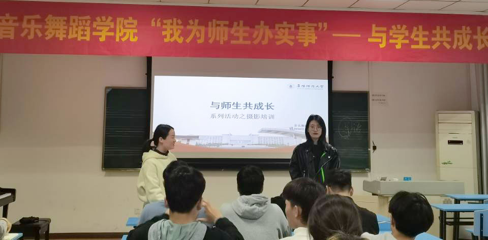 音乐舞蹈学院“我为师生办实事”之与学生共成长系列培训活动4月顺利启幕。4月20日-21日,学院邀请文学院教师郝韶梦、美术学院教师房子仪分别主讲“应用文写作”和“摄影技术应用”,院团委指导教师、学生会全体成员及各班级学生干部到场聆听。