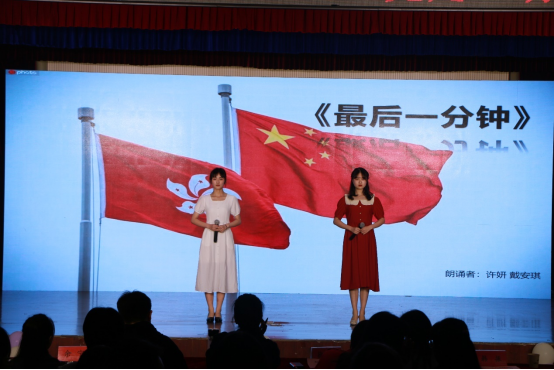比赛在诗歌《祖国》中拉开序幕,选手朗诵经典诗文,歌颂伟大祖国,以声传情,用赤诚之心表达拳拳爱国爱党之情。选手们的表现深深打动了在场观众,赢得了阵阵掌声,引发了强烈共鸣。经过紧张激烈的比拼,戴安琪和许妍朗诵的《最后一分钟》获得本次比赛的第一名。