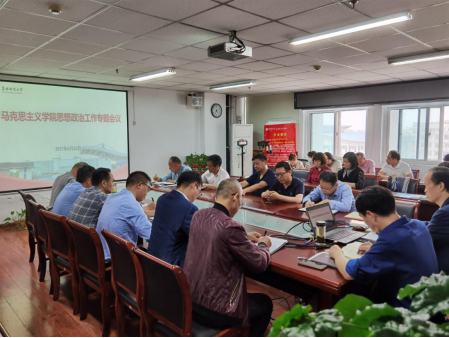 5月26日下午,马克思主义学院召开思想政治工作专题会议,学院党总支书记高思杰主持会议,学院党总支副书记、院长闫成俭,党总支委员、副院长朱宗友,全体教师参加会议。