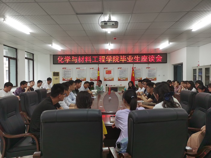 5月25日下午,化学与材料工程学院2021届毕业生代表座谈会在新化学楼C-207会议室举行。学院党委书记马健,党委副书记田志坚,各教研室、实验室主任出席座谈会。