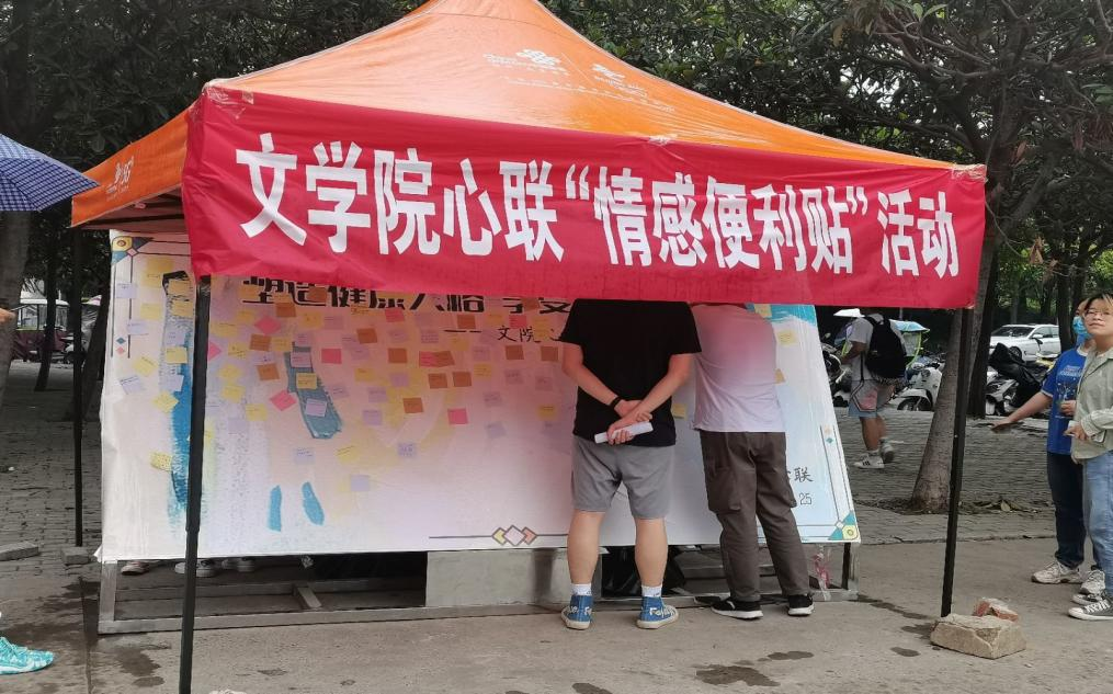 2021年5月25日,文学院心理委员联合会在一区食堂北门开展“塑造健康人格,享受快乐生活”情感便利贴活动。同学们在“心愿板”前将自己近期的小目标、无处倾诉的烦心事和对未来的期许写在便利贴上。同学们通过便利贴传递对美好生活的向往、未来的期许、对家人朋友的祝福与感激等。