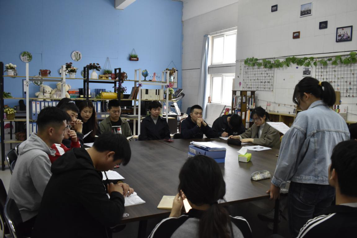 4月20日中午,学生社团管理中心在大学生活动中学社管中心办公室召开全体成员述职大会。社管中心指导老师张曦,校团委学生兼职副书记刘鼎泰、陈杨兴出席大会,会议由张曦主持。