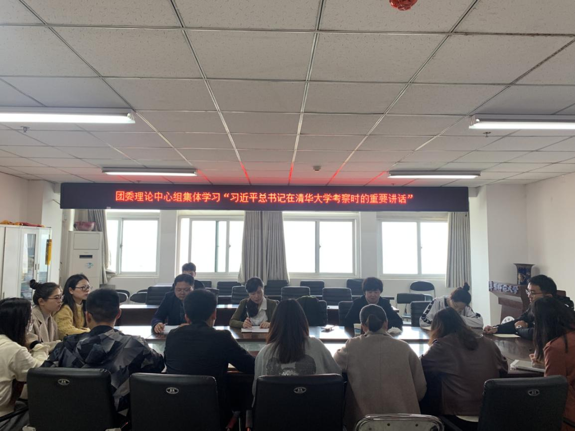 4月27日,校团委在正行楼1004召开理论中心组学习会,专题学习习近平总书记在清华大学考察时的重要讲话,校团委全体成员和各二级学院团委(团总支)负责人参加会议,会议由校团委副书记刘晓娟主持。