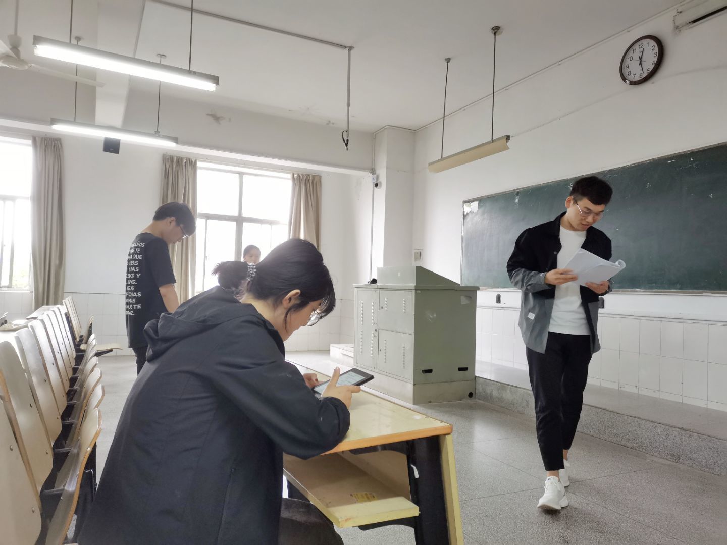 该活动提倡学生对目前正在排演的话剧剧本提出自己的见解和看法,使得剧本内容更加贴近生活,让剧本更好地反映出时代主旋律。部门成员纷纷各抒己见,结合生活经验和习近平新时代中国特色社会主义思想,对话剧进行了修改和删减。
