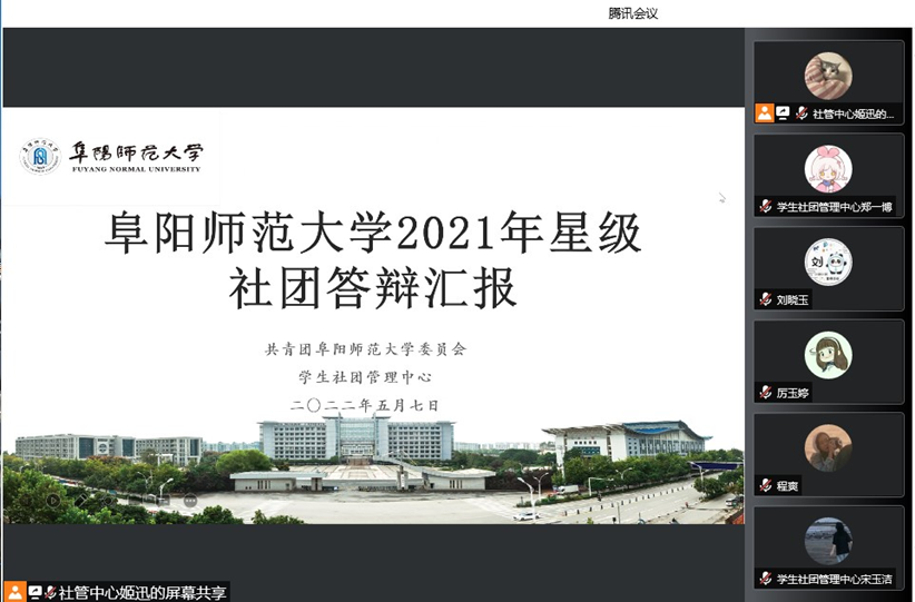 为落实立德树人根本任务,进一步发挥好学生社团的引导作用,促进学生社团活动开展的积极性与规范性,助力校园文化建设,5月7日,校团委在线召开2021年星级学生社团答辩会。校团委书记刘晓娟、副书记杨劲、各社团指导老师、学生社团管理中心成员以及部分社团负责人代表参加会议。