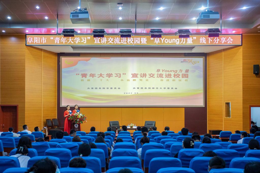 为进一步创新丰富“青年大学习”线下活动体系,了解阜阳青年榜样、感受阜阳力量,9月14日下午,校团委在西湖校区躬行楼报告厅举办阜阳市“青年大学习”宣讲交流进校园暨“阜Young力量”线下分享会。阜阳团市委有关负责人和校党委宣传(统战)部、党委学生工作部、研究生工作部、校团委等有关单位负责人及我校青年师生代表参加分享会。
