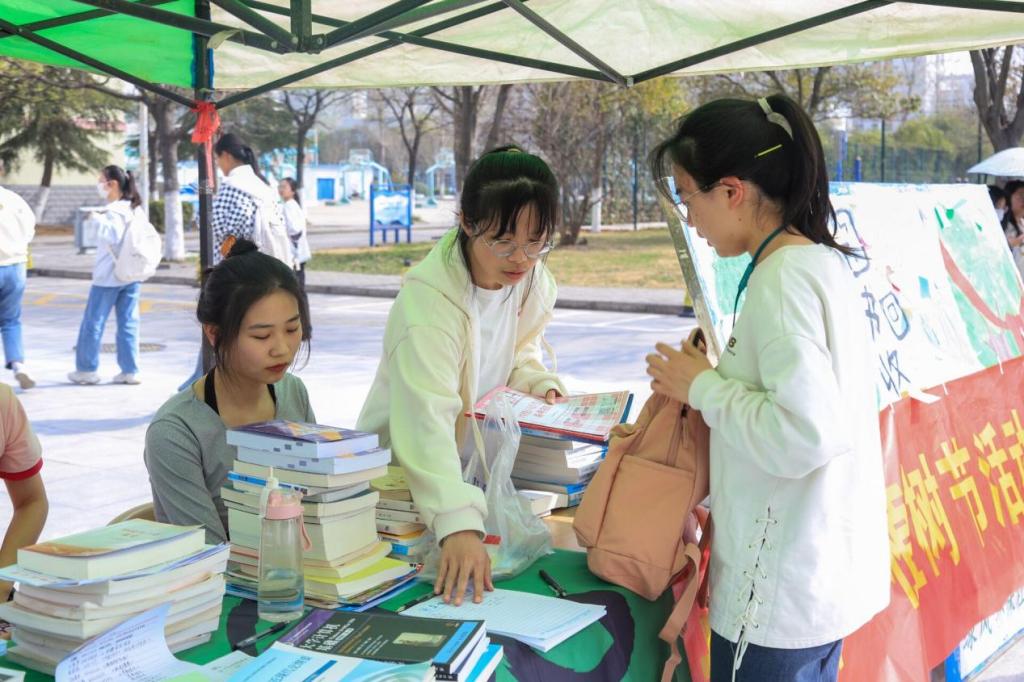 本次活动主要包括“校园清扫”“旧书回收”和“树叶便签”三项活动。绿风环保社副社长刘志伟、谢恒带领活动成员开展“校园清扫”活动,对校园卫生死角进行了清理打扫,捡拾白色垃圾,美化校园环境。校学生会和校青年志愿者协会开展“旧书回收”和“树叶便签”活动,邀请全校师生参与旧书捐赠,将写下希望与祝福的彩色便签粘贴在海报中的树木上,寓意“播种希望,期待曙光”。