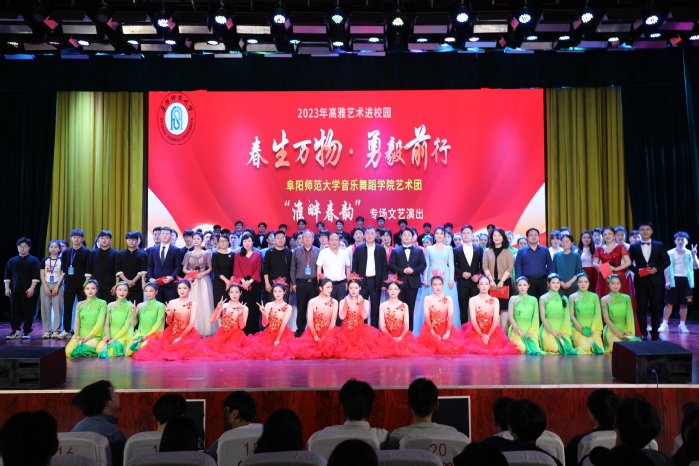 4月19日下午,由安徽省教育厅主办,共青团阜阳师范大学委员会、阜阳师范大学音乐舞蹈学院承办的2023年“高雅艺术进校园”专场演出在亳州学院创新楼报告厅举办。亳州学院党委书记胡恩彪及我校团委、音乐舞蹈学院等单位负责人与亳州学院师生代表共同观看了演出。
