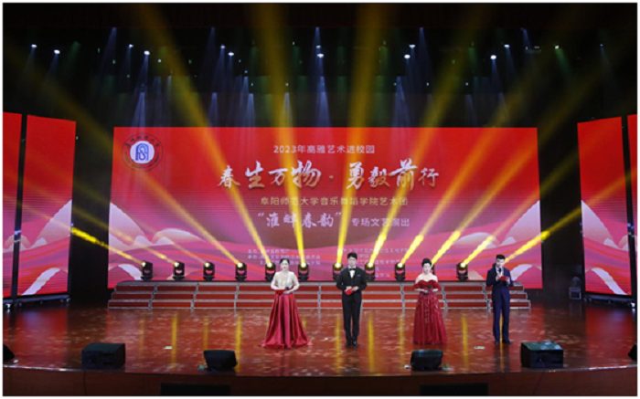 为深入贯彻落实党的二十大精神,全面加强和改进新时代高校美育工作,4月24至26日,由安徽省教育厅主办,共青团阜阳师范大学委员会、音乐舞蹈学院承办的2023年“高雅艺术进校园”专场文艺演出分别走进淮南师范学院、安徽工商职业学院、安徽中医药大学和安徽工贸职业技术学院。