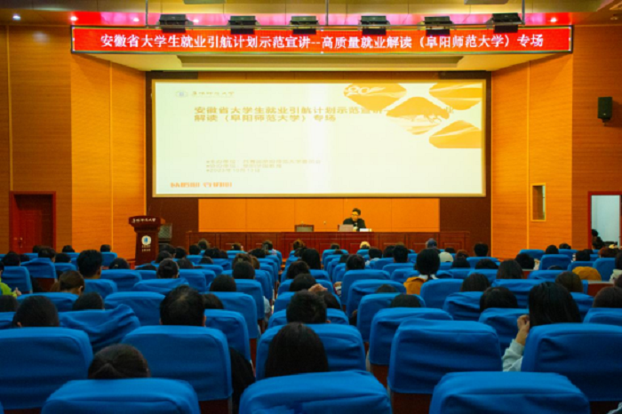 为深入贯彻落实《2023年安徽省共青团促进大学生就业行动方案》要求,深入实施大学生就业帮扶计划,10月13日下午,校团委联合安徽华图教育在西湖校区躬行楼报告厅举办“安徽省大学生就业引航计划示范宣讲——高质量就业解读(阜阳师范大学)专场”活动,华图教育研究与培训钱涛讲师应邀担任本次宣讲主讲,宣讲会由校团委副书记杨劲主持。