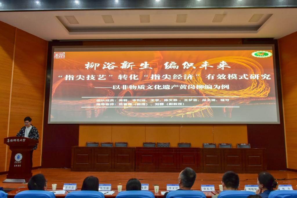 会上,参赛项目团队的队长高鹤就参赛作品《柳浴新生编织未来:“指尖技艺”转化“指尖经济”有效模式研究——以非物质文化遗产黄岗柳编为例》开展模拟答辩。评委们根据答辩情况进行点评,提出了指导意见。从答辩语速,到PPT的风格和美化、图文层次,再到项目内容比重,项目重点等,专家们从细节出发,提出了修改意见和优化方案。