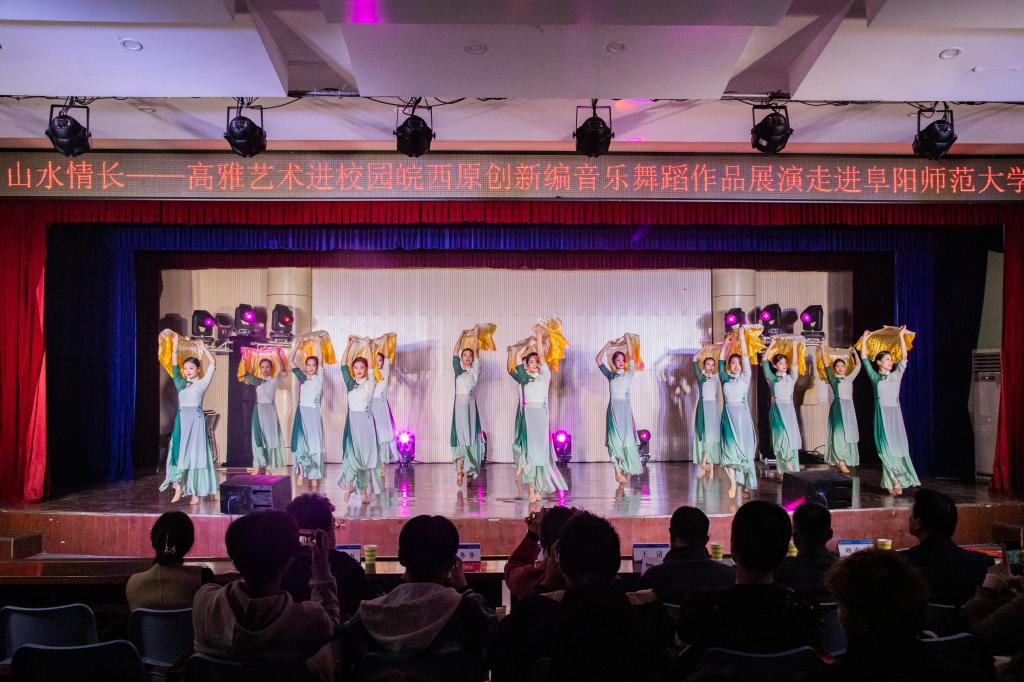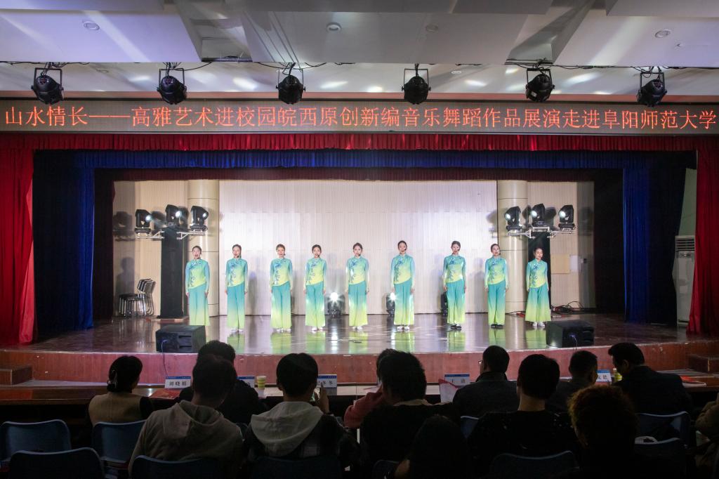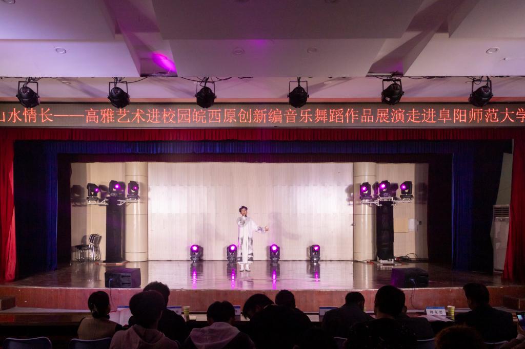11月14日,由安徽省教育厅主办,皖西学院承办的2023年高雅艺术进校园“山水情长”专场演出在阜阳师范大学西湖校区景行楼小礼堂举行。皖西学院艺术学院有关负责人及教师代表和我校党委宣传部(党委统战部)、党委学生工作部、校团委、音乐舞蹈学院等单位有关负责人与我校300名学生代表共同观看了演出。