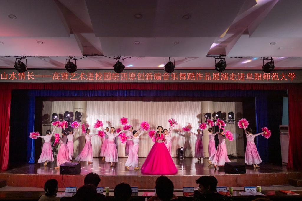 本场演出以皖西地区原创歌舞为主,以传承创新的形式呈现,透过灵动的舞姿,感受到艺术的曼妙;透过古龠的曲调,聆听到国风的芳华。借助歌伴舞、民歌联唱等多种艺术表现形式,向在场师生诠释了红色皖西的魅力所在,为我校师生奉上一场视听盛宴。