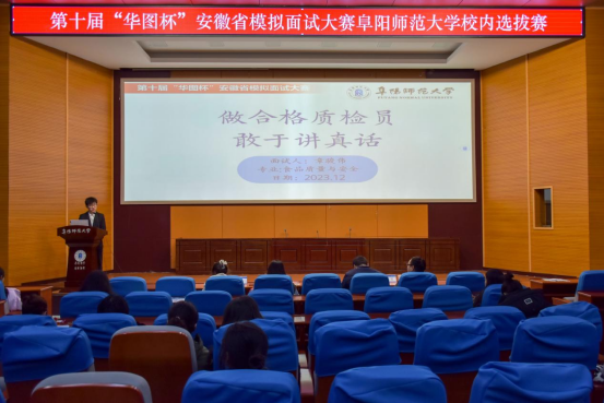 为深入贯彻党的二十大精神,强化就业优先政策,健全就业促进机制,促进高质量充分就业,营造职业生涯规划氛围,提升我校学生的面试技巧,12月14日下午,校团委联合安徽华图教育在西湖校区躬行楼报告厅举办第十届“华图杯”安徽省模拟面试大赛阜阳师范大学校内选拔赛。华图面试、数量关系与资料分析讲师郭苗,华图教育研究与培训专家葛璇应邀担任评委。