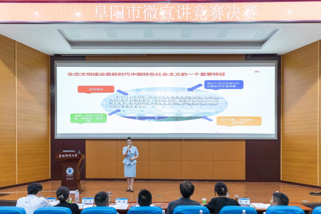 5月29日,阜阳市微宣讲竞赛决赛在我校西湖校区躬行F楼报告厅举行,我校两百余名师生到场观摩。