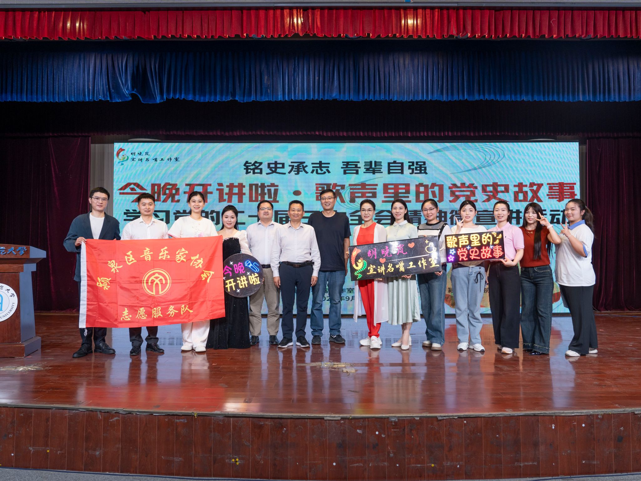 为深入学习贯彻党的二十届三中全会精神,不断激励广大青年学生把爱国情、强国志、报国行自觉融入学习生活中,9月18日晚,学校在西湖校区景行楼报告厅举办“今晚开讲啦·歌声里的党史故事”——学习党的二十届三中全会精神微宣讲活动,为广大学子带来别开生面的“开学第一课”。党委宣传部、学生工作处、校团委等单位有关负责人及全校师生代表300余人参加了此次活动。