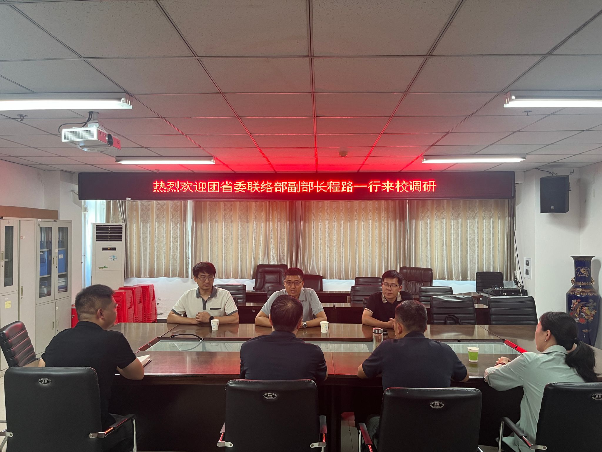 9月9日下午,团省委联络部副部长程路、团省委联络部挂职干部张浩、团市委办公室主任张金平一行来我校调研,并送我校挂职干部王治成返校。校党委常委、党委组织部部长包春雷,党委学生工作部部长、武装部部长黄正杰,校团委书记刘晓娟,数学与统计学院党委副书记徐悦参加座谈交流。会议由刘晓娟主持。