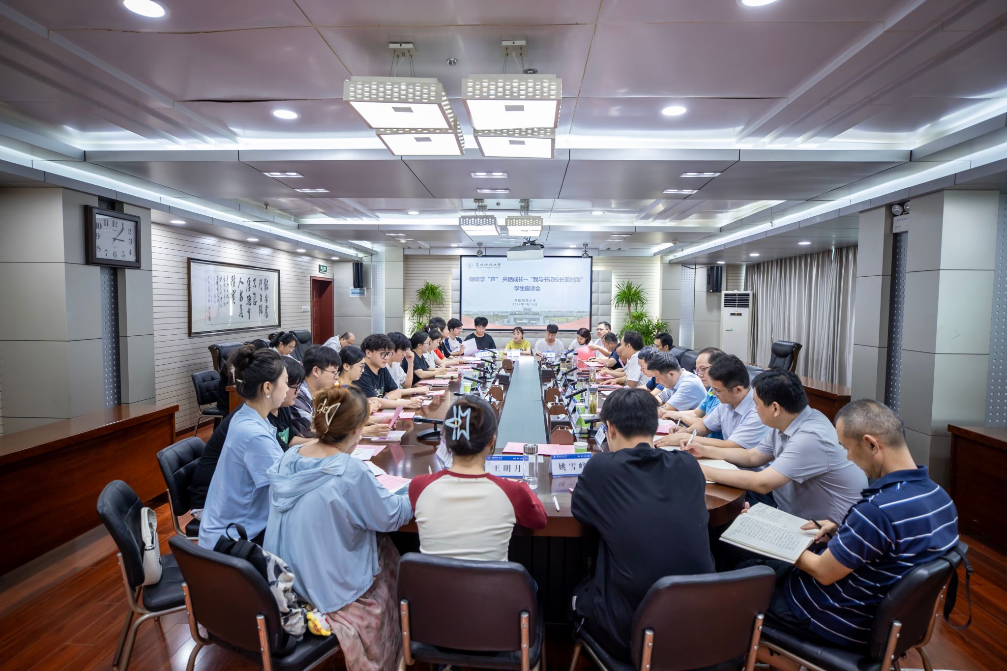为营造“倾听学生心声、关心学生成长、促进学校发展”的良好氛围,打通服务学生“最后一公里”,7月16日下午,学校在西湖校区正行楼1202会议室举办“我与书记校长面对面”学生座谈会。校党委副书记、校长方廷勇出席会议,学校相关职能部门负责人和各二级学院的学生代表参加会议。