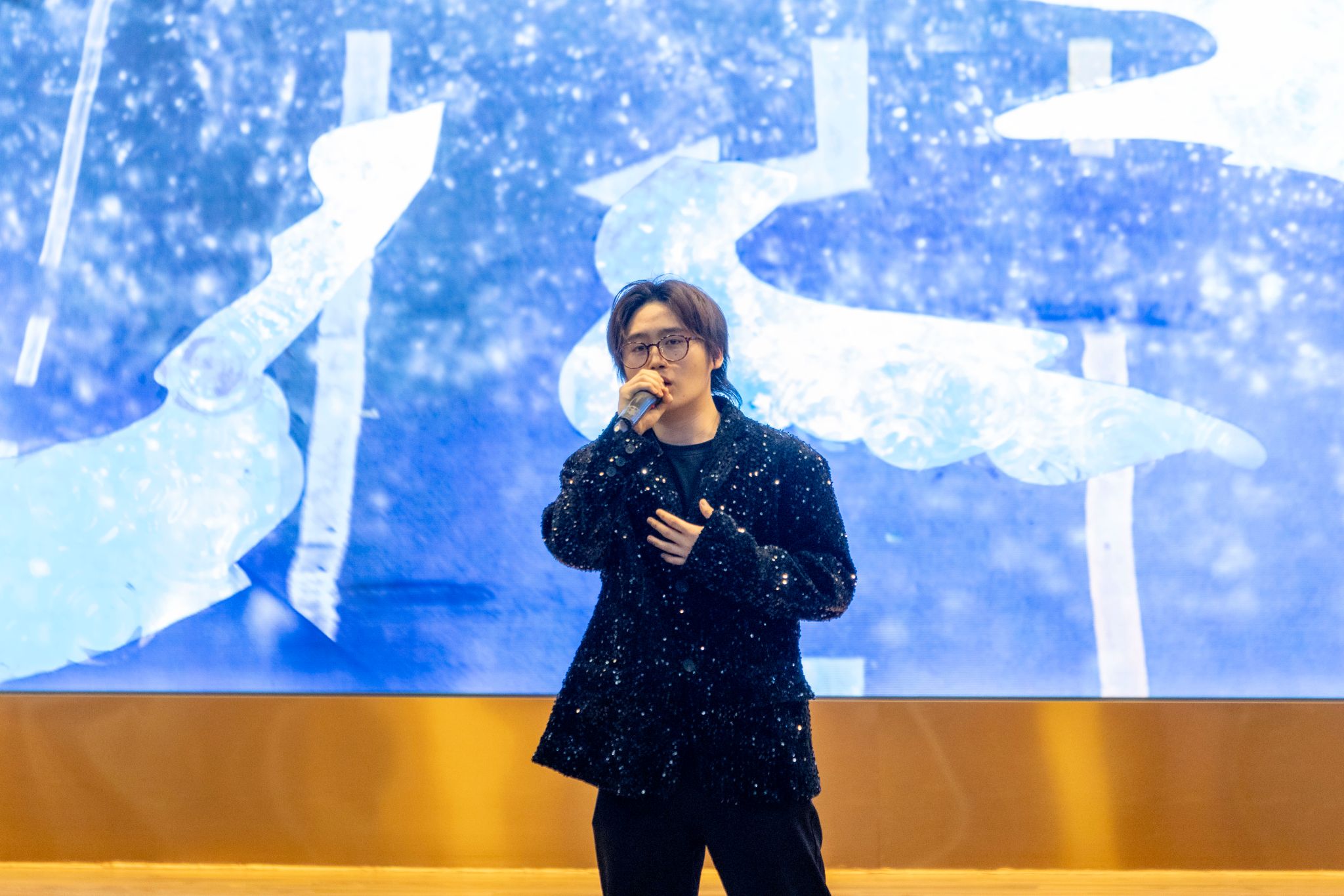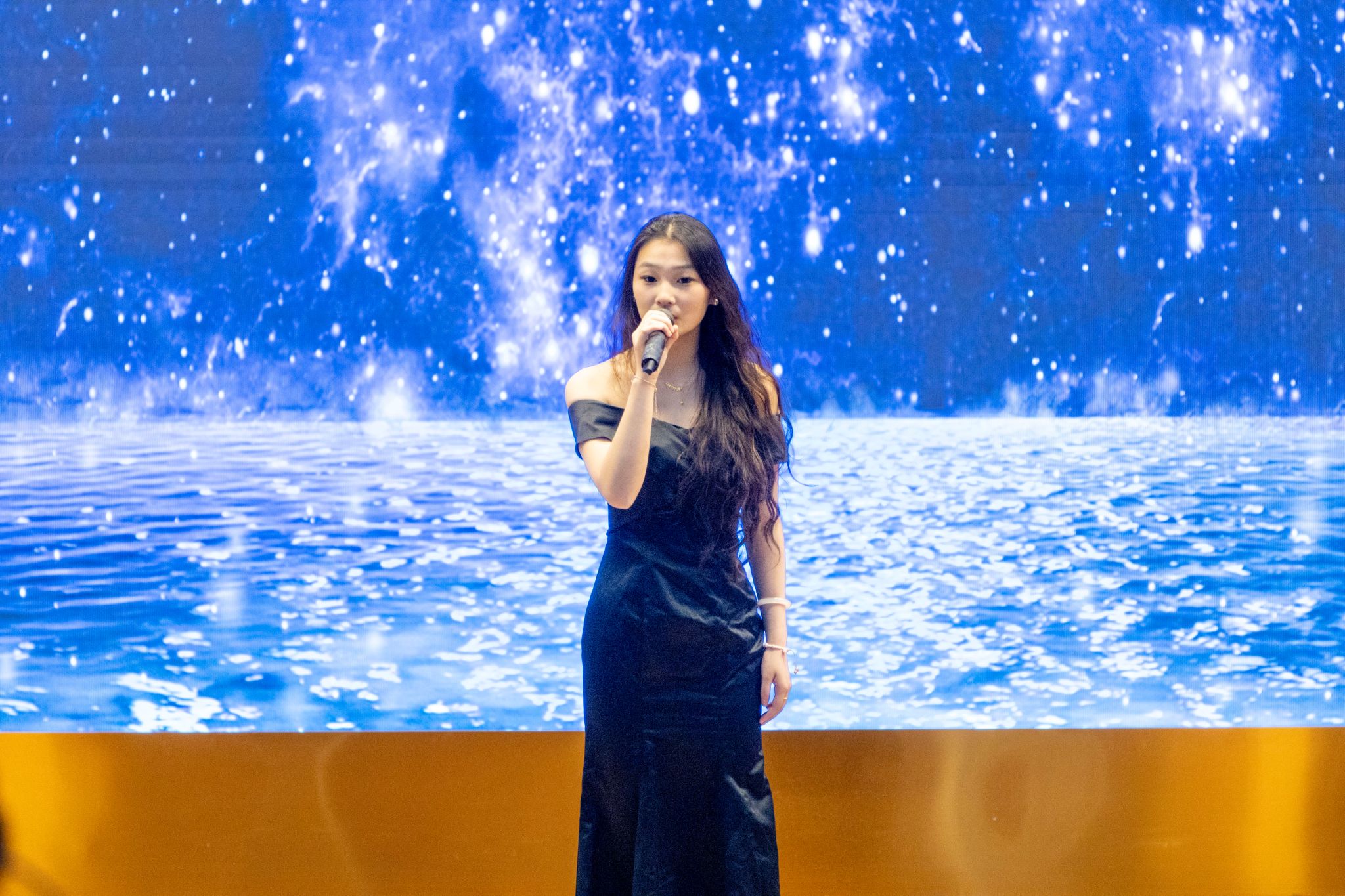 活动在我校大学生艺术中心合唱团深情演绎的《世界赠予我的》歌曲中拉开帷幕,悠扬的旋律点燃了现场观众的热情。2024年安徽省大学生校园十大歌手大赛十强选手,来自安徽警官职业学院的李其远以《我记得》《我还年轻我还年轻》两首歌曲,用充满力量的嗓音传递了青年一代的蓬勃朝气。我校音乐舞蹈学院的陈子怡则以一曲《如愿》唱出了对祖国未来的美好期许。2024年安徽省大学生校园十大歌手大赛冠军,来自安徽艺术职业学院的王乾硕以《时间的一瞬》《天下》展现扎实唱功,将气氛推向高潮。2024年安徽省大学生校园十大歌手大赛十强选手,来自合肥师范学院的葛文静和合肥经济技术职业学院的田敏捷用《匆匆那年》《Dear John》唤起观众共鸣,细腻演绎赢得阵阵掌声。我校音乐舞蹈学院盛一鸣的《我的美丽》、陈雨梦的《有我》等节目均以多元风格展现了大学生对音乐的热爱与追求。活动穿插的“微信摇一摇”“音乐猜猜猜”等互动游戏,吸引了观众踊跃参与,现场欢声笑语不断。活动在我校大学生艺术中心合唱团合唱的《阜阳师范大学校歌》中落下了帷幕。