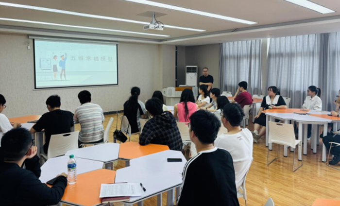 开展心理健康辅导培训,培养积极乐观的人生态度。为进一步提升志愿者心理健康素养,培养积极乐观的人生态度,6月6日上午,校团委邀请学校心理健康教育中心刘时勇老师为志愿者们讲授以“从‘心’成长五步法”为主题的“五维幸福模型”课程。培训现场,刘时勇老师通过生动的案例解析和互动练习,系统阐释了由积极心理学奠基人马丁·塞利格曼提出的PERMA幸福模型核心内涵。课堂上,志愿者们通过“五维幸福模型”化身"幸福课程设计师",将抽象的PERMA元素转化为可感知、可实践的课程与活动。